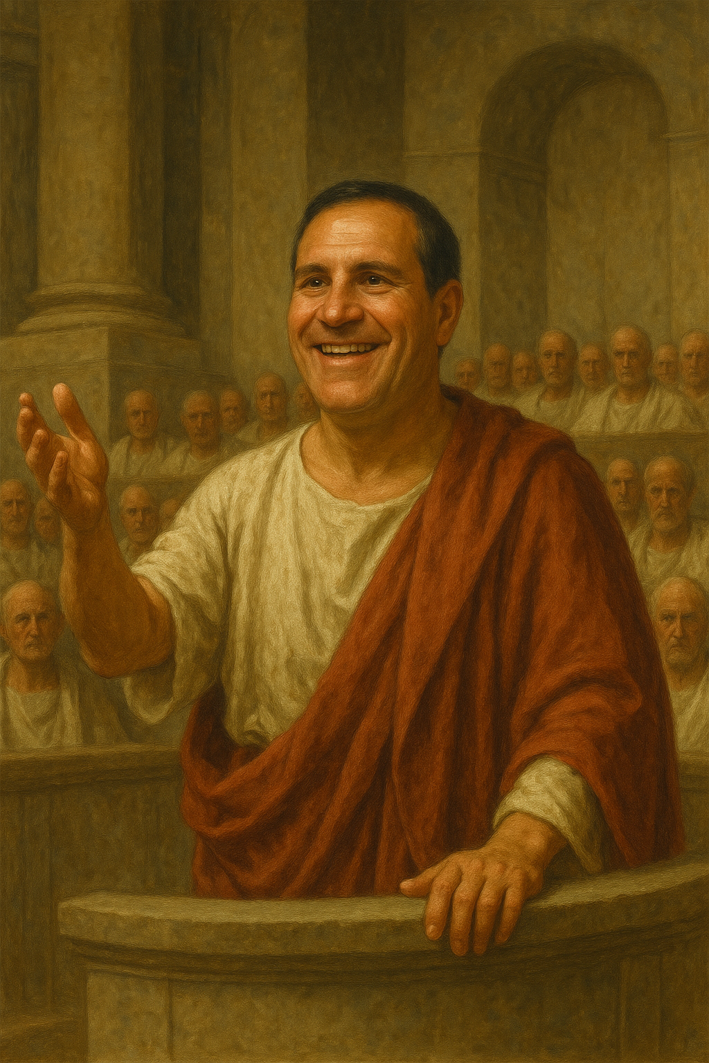 Unser römischer Senator Dr. Bruno Amendola hat schon 44 vor Christus sein Wort für eine zuckerfreie Gesellschaft erhoben.