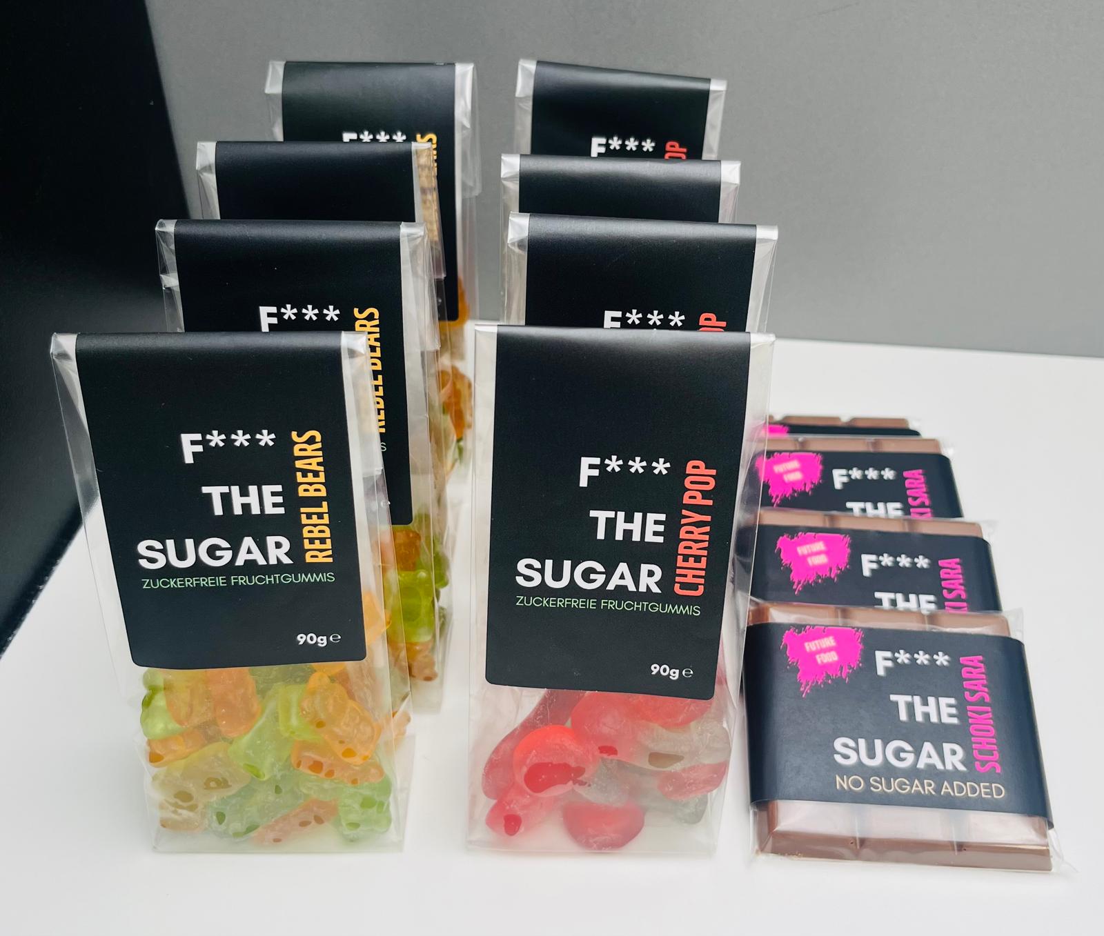 Die F*** THE SUGAR Kindergarten Box zeigt, dass Naschen auch ohne zugesetzten Zucker und ohne künstliche Süßungsmittel funktioniert.