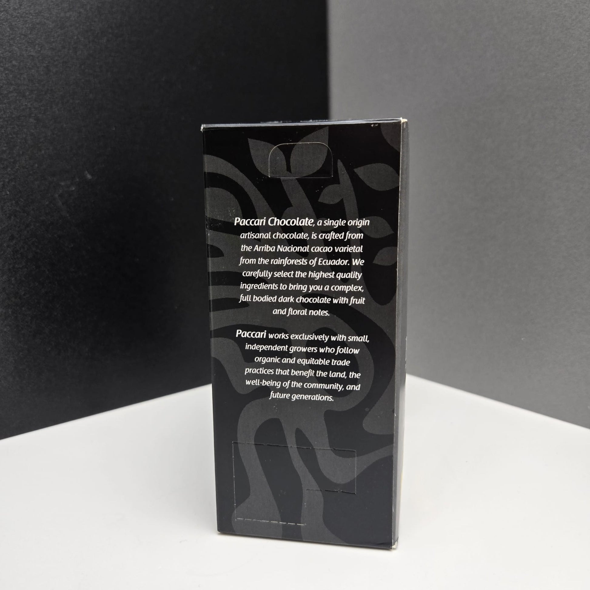 Der Kakaoanteil bei dieser Tafel liegt bei 100%, wodurch sie zu etwas ganz Besonderem wird. Das Aroma dieser rohen Paccari Tafel erinnert an Karamell-Toffee, leicht an Zitrusfrucht sowie Holz und Walnuss.
